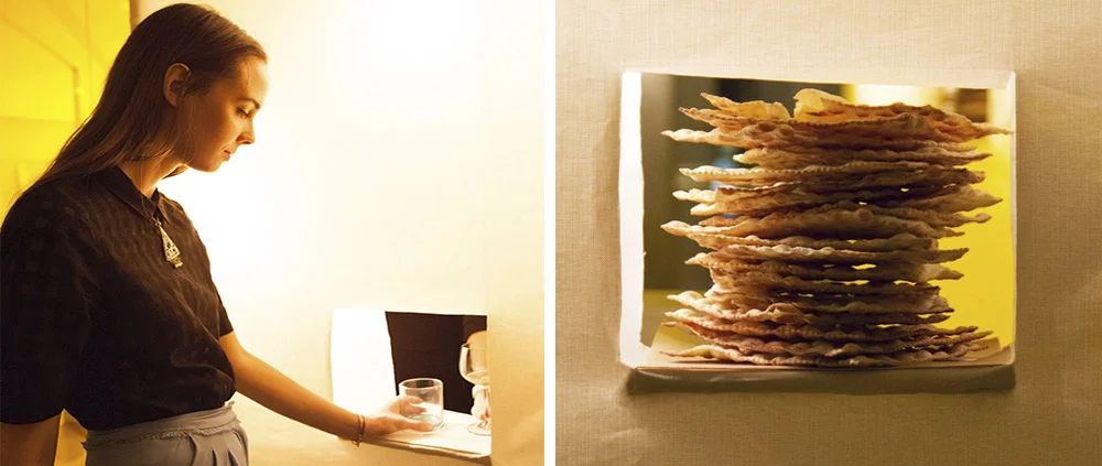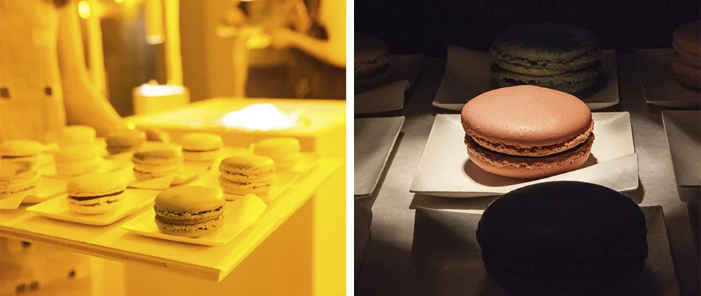 The installation focused on the ability of color and luminosity to alter atmospheres. By employing low-pressure-sodium luminaires, the color of the environment was neutralized save for focused light, rendering moments of color that accentuated the food.