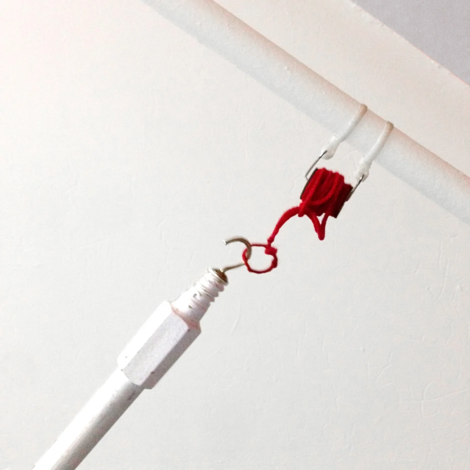 Conceived and constructed in one week, the installation was assembled in less than 15 minutes. The materials used were kept to a minimum of four: Woolthread, Cardboard, Metalwire, Zipties