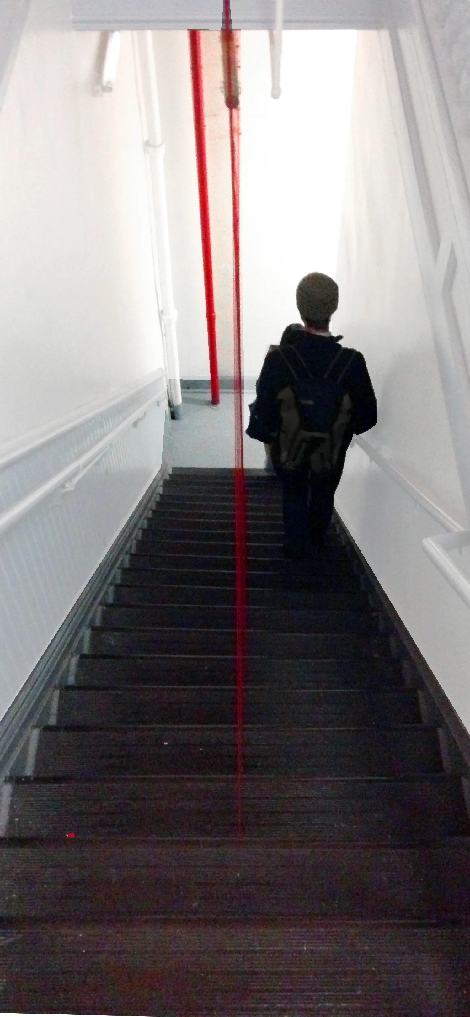 Manipulating the stairway of the School of Constructed Environments, this installation evokes spatial awareness and increased sensitivity to everyday movement.